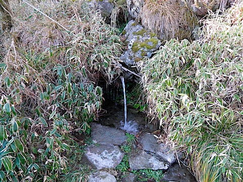 お亀避難小屋から少しで水場がありました。おいしそう。このコースで登ってくるなら水が少なめでもいいかも(煮沸のバーナーが必要になるけど…)進みます。